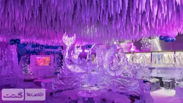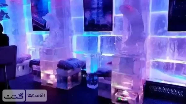 • محیطی با دکوراسیون و مبلمان ساخته شده از بلوک‌های یخی