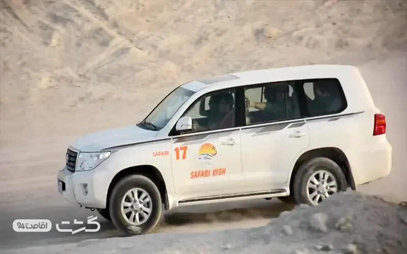 در سافاری لندکروز می توانید مانورهای اسپرتی و هیجانانگیزی بر روی تپههای شنی و شیبهای تند، به وسیله ماشینهای بینظیری با تجهیزات ایمنی تجربه کنید.