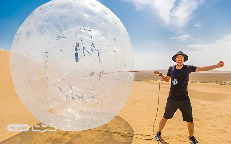 اگر به دنبال تجربه لذتبخش بازی دونفره هستید، زورب بال کیش به شما پیشنهاد میشود. در بازی زورب بال، افراد پس از پوشیدن لباس مخصوص، در توپی بزرگ قرار میگیرند. سپس توپ در زاویه 45 درجه به سمت پایین هدایت میشود.